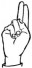 На ћирилици написано КОСТАДИН ФИЛИПОВИЋ састоји се из 17 слова [?]. Исписано ћириличном једноручном азбуком за глувонеме: